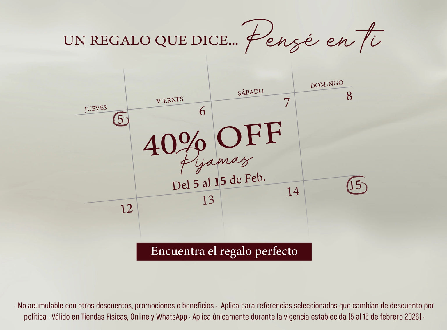 Hasta 30 días para cambios y 5 días para devoluciones.